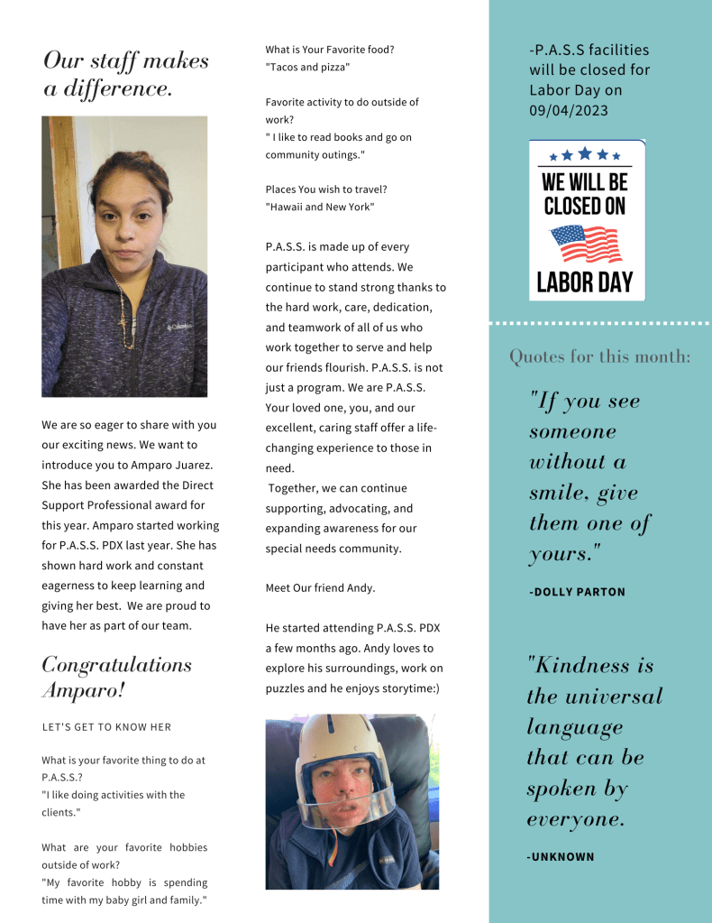 Every year, PASS awards DSP of the Year to a Direct Support Professional for their ability to stand out as a caregiver and provide clients with a memorable experience while being a powerful advocate for their well-being.